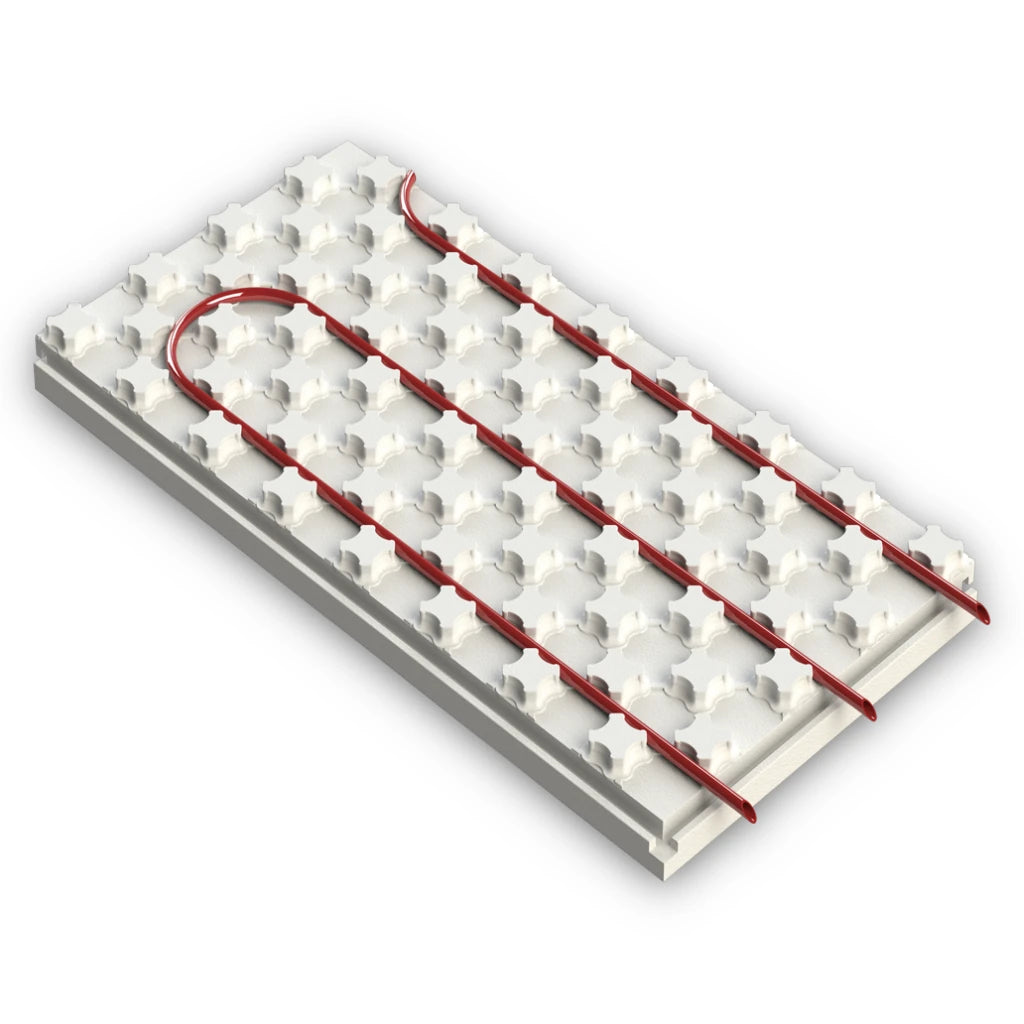 Heat-Sheet® tubing channel system provides proper, multidirectional placement of 1/2", 5/8" or 3/4" I.D. tubing with 3" on-center points.