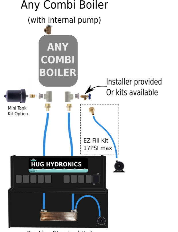 The HUG Hydronics EZ Fill Kit, makes it easy to fill any combi boiler that has an internal pump.
